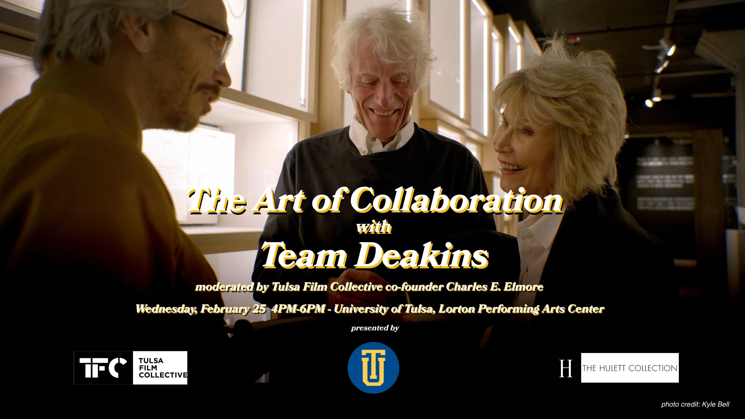 Tulsa Film Collective and TU Film Studies bring Roger and James Deakins to Tulsa for a free conversation titled "The Art of Collaboration with Team Deakins" with the local filmmaking community on Wednesday, February 25 at the Lorton Performing Arts Center from 4 to 7 PM.